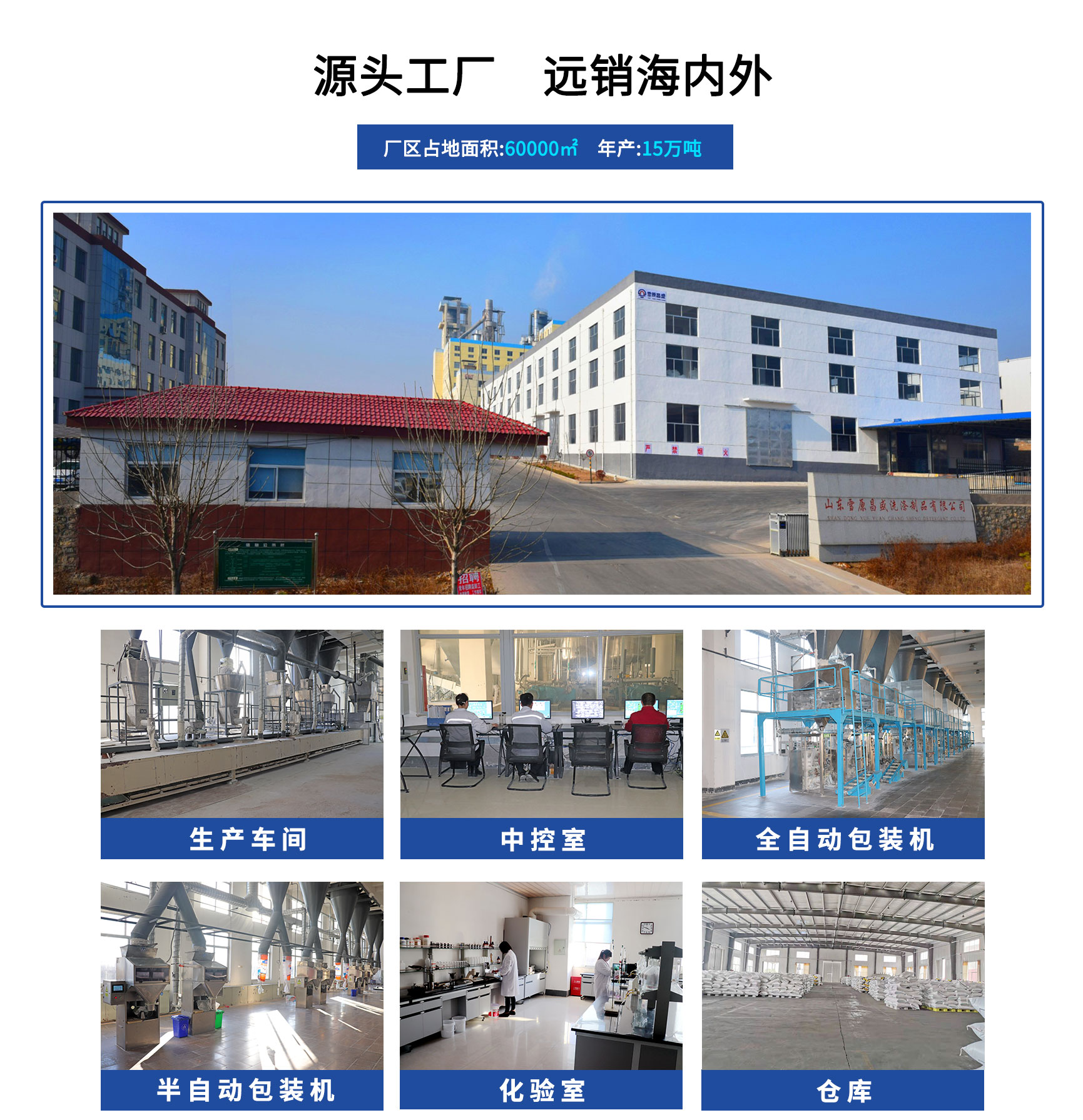 山東雪原昌盛洗滌制品有限公司,廠區占地面積6萬余平方米,現有員工200余人,年可生產高中檔合成洗滌劑用品15萬噸。公司擁有高標準、零污染、清潔環保的洗衣粉高塔噴粉生產線2條。公司于2019年通過ISO9000國際質量管理體系認證,建立了完善的產品質量控制體系,從原材料進廠到產品出廠,每一道工序都經過嚴格的質量把控,確保產品各項指標均達到客戶的要求。