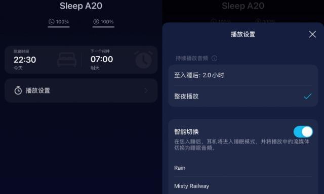 Sleep A20頁面中展示耳機電量情況,并可以對就寢時間、鬧鐘,以及睡眠模式下音頻的播放時長等進行設置;而在睡眠數據頁面,APP依靠MEMS傳感器對用戶的睡眠情況進行監測形成睡眠數據,便于用戶了解自身睡眠情況進行睡眠管理。
